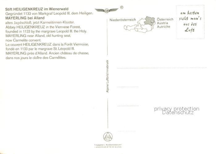 73043093 Mayerling Baden Stift Heiligenkreuz Fliegeraufnahme postalisch nicht gelaufen Erhaltung siehe scans [NatalD47] KatCode: 11390127030604