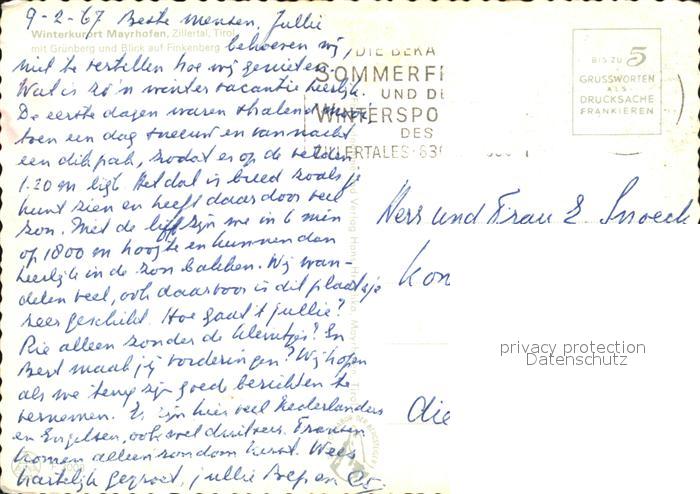 72497818 alte Postkarte Mayrhofen Zillertal postalisch gelaufen Erhaltung siehe scans KatCode: 11390335070920