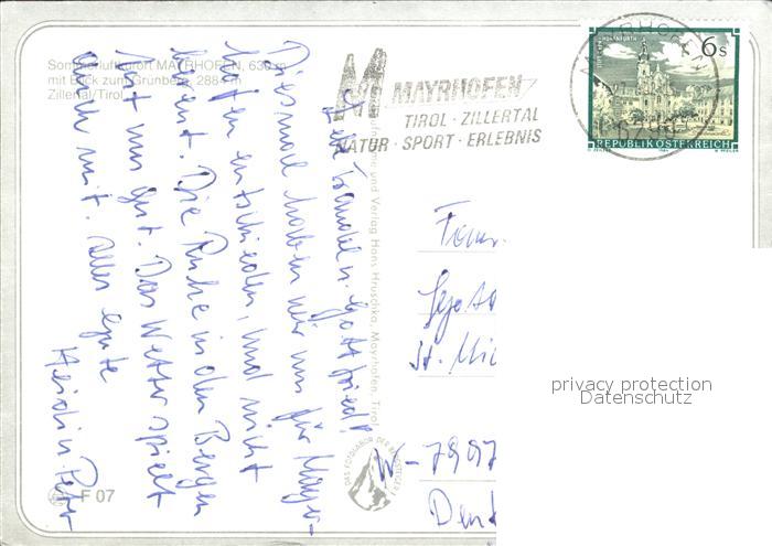 72375953 alte Postkarte Mayrhofen Zillertal postalisch gelaufen Erhaltung siehe scans KatCode: 11390335070920