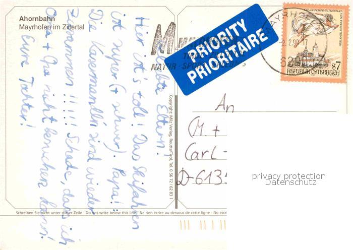 72752379 alte Postkarte Mayrhofen Zillertal Ahornbahn postalisch gelaufen Erhaltung siehe scans [AndreD76] KatCode: 11390335070920
