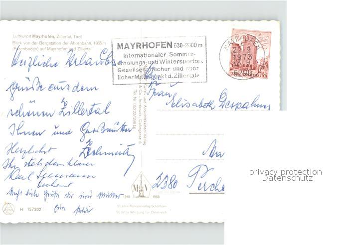 71903587 alte Postkarte Mayrhofen Zillertal Ahornbahn Bergbahn Panorama Wappen postalisch gelaufen Erhaltung siehe scans KatCode: 11390335070920