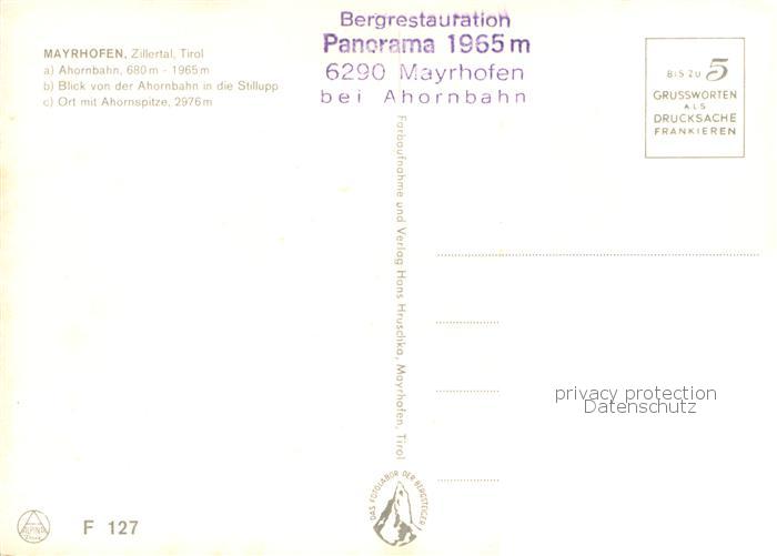 73756951 Mayrhofen Zillertal Ahornbahn Stillupp Ahornspitze postalisch nicht gelaufen Erhaltung siehe scans [LiesaD40] KatCode: 11390335070920