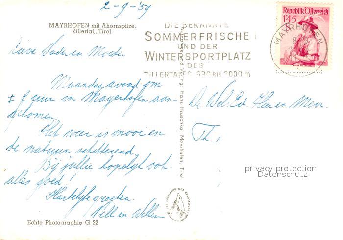 73052917 alte Postkarte Mayrhofen Zillertal Ahornspitze postalisch gelaufen Erhaltung siehe scans [KathaD81] KatCode: 11390335070920
