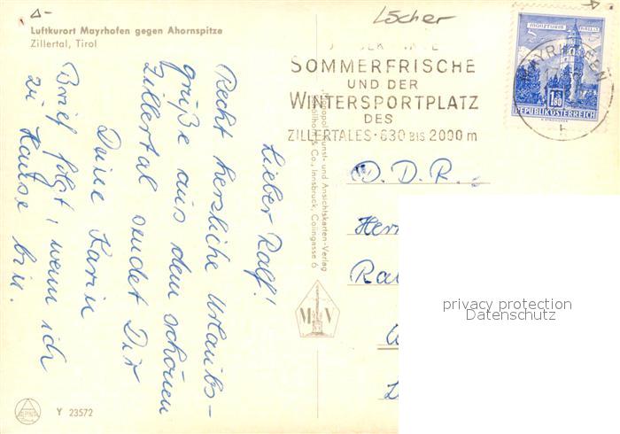 72928492 alte Postkarte Mayrhofen Zillertal Ahornspitze postalisch gelaufen Erhaltung siehe scans [NatalD47] KatCode: 11390335070920