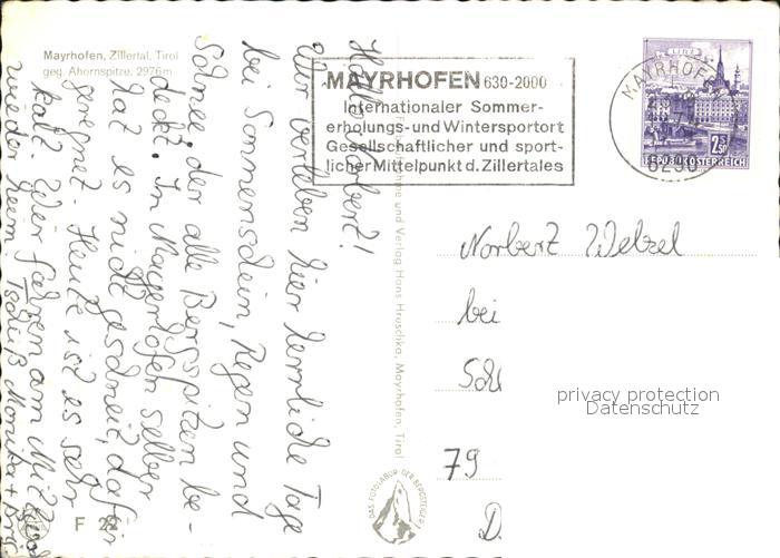 72497163 alte Postkarte Mayrhofen Zillertal Ahornspitze postalisch gelaufen Erhaltung siehe scans KatCode: 11390335070920