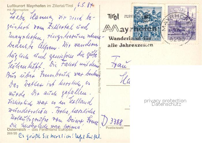 73122142 alte Postkarte Mayrhofen Zillertal Ahornspitze postalisch gelaufen Erhaltung siehe scans [NatalD47] KatCode: 11390335070920