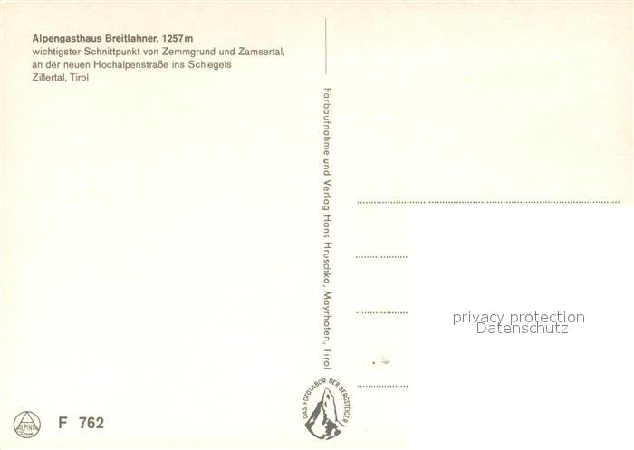 73162260 Mayrhofen Zillertal Alpengasthaus Breitlahner Zillertalper Alpen postalisch nicht gelaufen Erhaltung siehe scans [FriedD77] KatCode: 11390335070920
