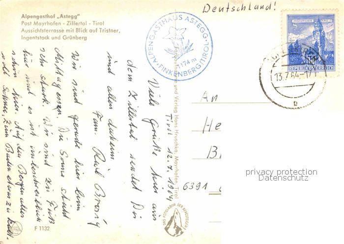 72915626 alte Postkarte Mayrhofen Zillertal Alpengasthof Astegg postalisch gelaufen Erhaltung siehe scans [NatalD47] KatCode: 11390335070920
