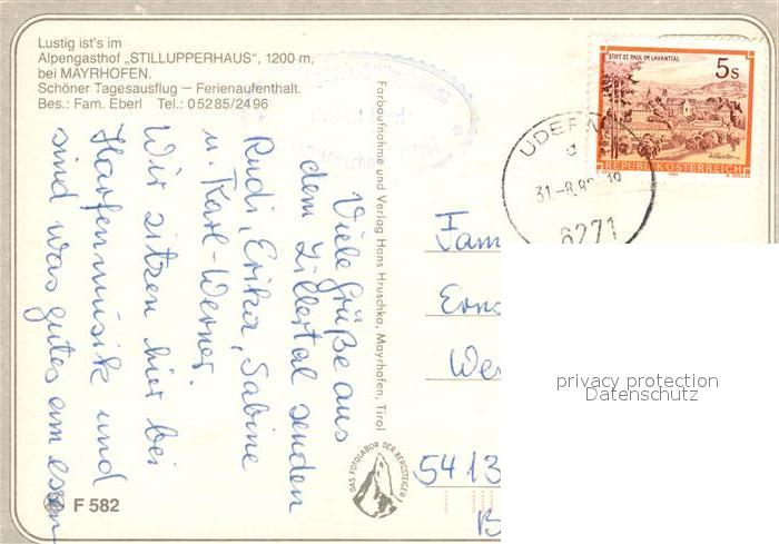 73167038 alte Postkarte Mayrhofen Zillertal Alpengasthof Stillupperhaus Gaststube mit Harfenspieler postalisch gelaufen Erhaltung siehe scans [WerneD78] KatCode: 11390335070920