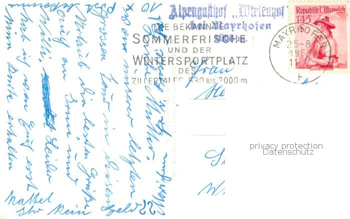73761597 alte Postkarte Mayrhofen Zillertal Alpenhaus Wiesenhof postalisch gelaufen Erhaltung siehe scans [FriedD77] KatCode: 11390335070920