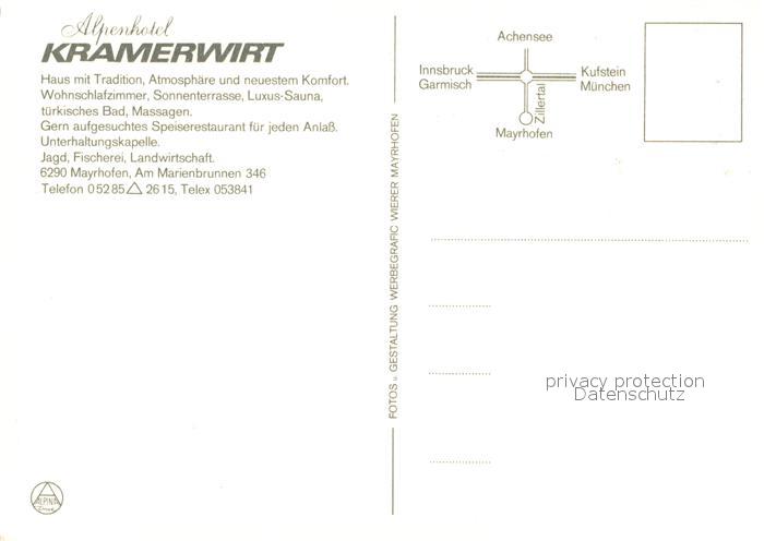 73613057 Mayrhofen Zillertal Alpenhotel Kramerwirt Restaurant postalisch nicht gelaufen Erhaltung siehe scans [FriedD77] KatCode: 11390335070920