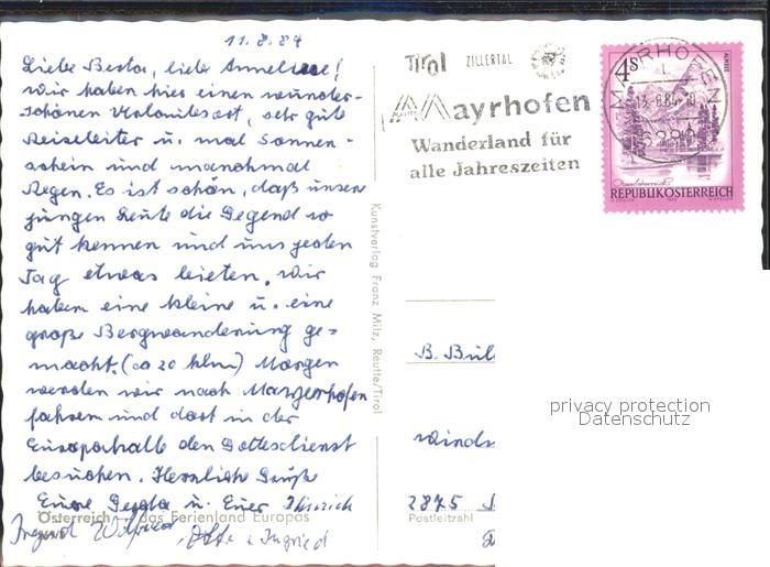 72452452 alte Postkarte Mayrhofen Zillertal Alpenpanorama Zillertaler Alpen Zell Tuxer Joch Wegekreuz Gerlos Pass Hintertux Edelweiss postalisch gelaufen Erhaltung siehe scans KatCode: 11390335070920