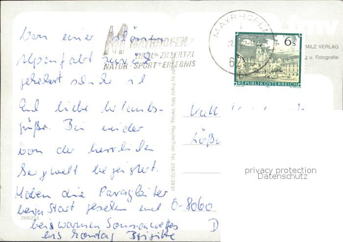 72377208 alte Postkarte Mayrhofen Zillertal Ansichten Brunnen postalisch gelaufen Erhaltung siehe scans KatCode: 11390335070920
