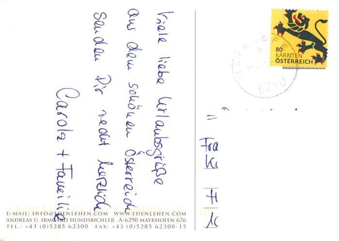 alte Postkarte Mayrhofen Zillertal AT Hotel Denlehen postalisch gelaufen Erhaltung siehe scans [FriedD77]