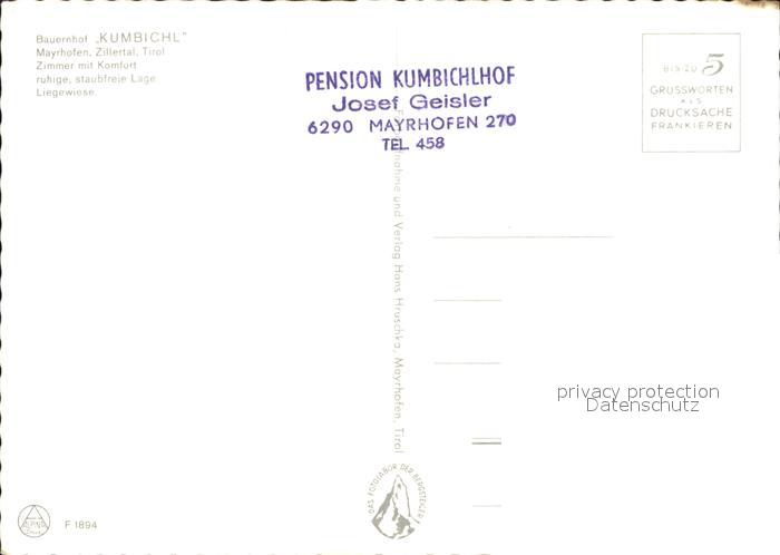 72591490 Mayrhofen Zillertal Bauernhof Kumbichl postalisch nicht gelaufen Erhaltung siehe scans [WerneD78] KatCode: 11390335070920