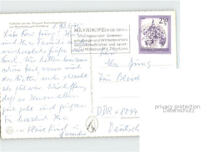 72362072 alte Postkarte Mayrhofen Zillertal Blick von Terrasse Steinerkogelhaus postalisch gelaufen Erhaltung siehe scans KatCode: 11390335070920