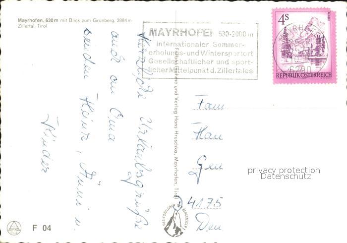 72438167 alte Postkarte Mayrhofen Zillertal Blick zum Gruenberg postalisch gelaufen Erhaltung siehe scans KatCode: 11390335070920
