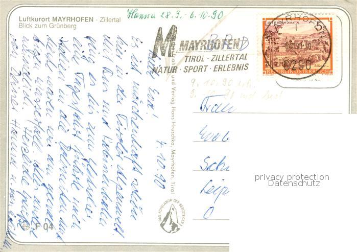 73714562 alte Postkarte Mayrhofen Zillertal Blick zum Gruenberg postalisch gelaufen Erhaltung siehe scans [WerneD78] KatCode: 11390335070920