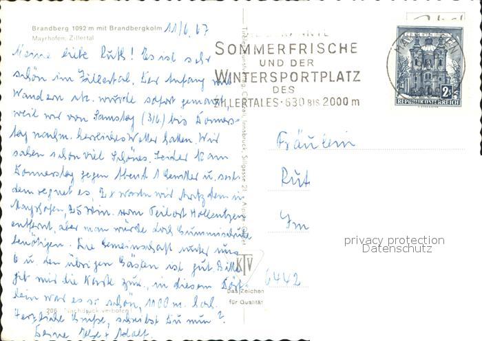 72606656 alte Postkarte Mayrhofen Zillertal Brandberg Brandbergkolm postalisch gelaufen Erhaltung siehe scans [NatalD47] KatCode: 11390335070920