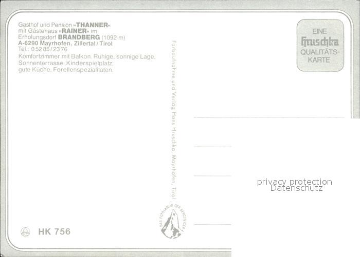 72481021 Mayrhofen Zillertal Brandberg Gasthof Thanner postalisch nicht gelaufen Erhaltung siehe scans KatCode: 11390335070920