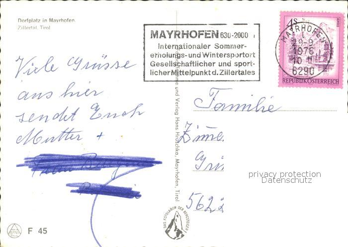72532419 alte Postkarte Mayrhofen Zillertal Dorfplatz postalisch gelaufen Erhaltung siehe scans [AndreD76 kt113box] KatCode: 11390335070920