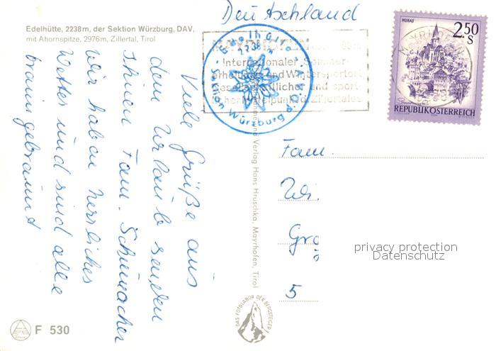 73589004 alte Postkarte Mayrhofen Zillertal Edelhuette mit Ahornspitze Zillertaler Alpen postalisch gelaufen Erhaltung siehe scans [FriedD77] KatCode: 11390335070920
