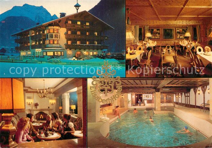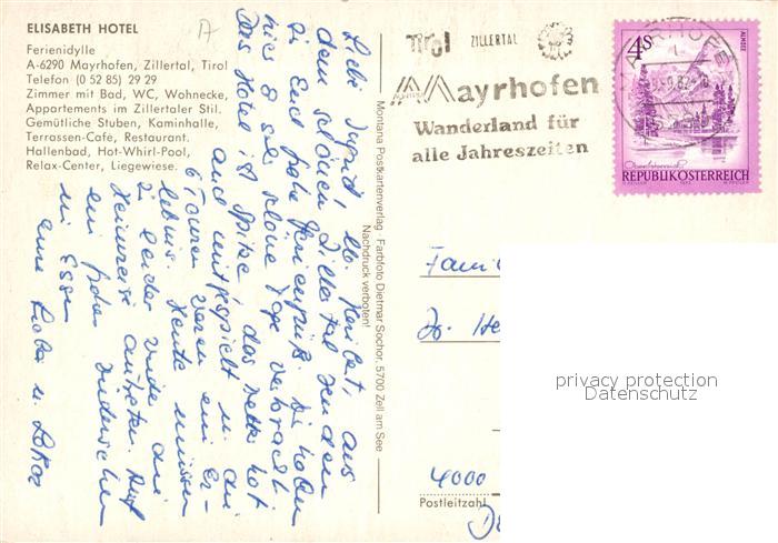 73588129 alte Postkarte Mayrhofen Zillertal Elisabeth Hotel Restaurant Hallenbad Nachtaufnahme im Winter Zillertaler Alpen postalisch gelaufen Erhaltung siehe scans [FriedD77] KatCode: 11390335070920