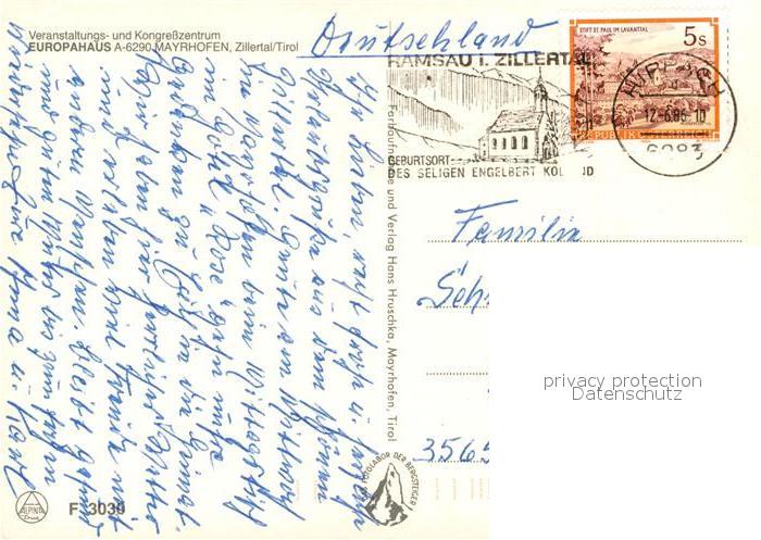 73246980 alte Postkarte Mayrhofen Zillertal Europahaus postalisch gelaufen Erhaltung siehe scans [KathaD81] KatCode: 11390335070920