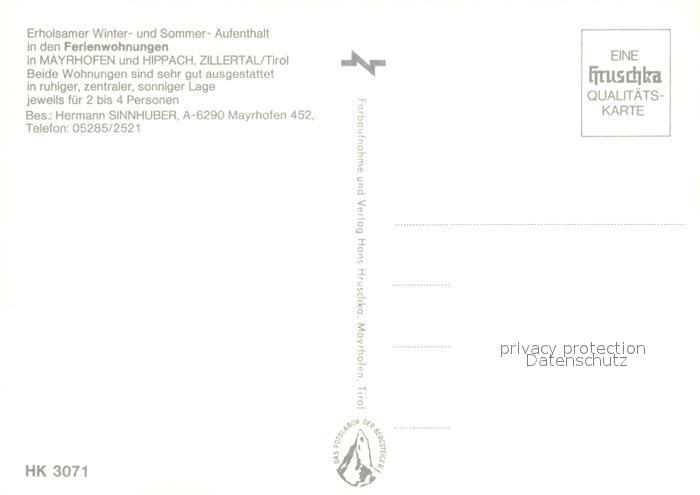 73591049 Mayrhofen Zillertal Ferienwohnungen Sinnhuber postalisch nicht gelaufen Erhaltung siehe scans [KathaD81] KatCode: 11390335070920