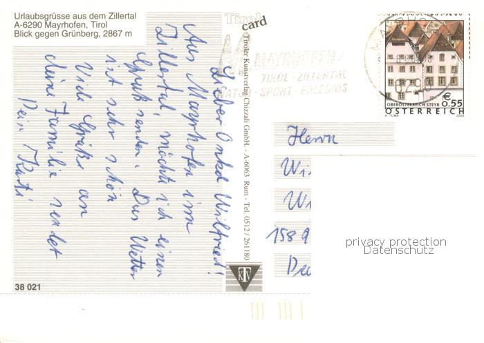 73754713 alte Postkarte Mayrhofen Zillertal Fliegeraufnahme mit Gruenberg postalisch gelaufen Erhaltung siehe scans [WerneD78] KatCode: 11390335070920