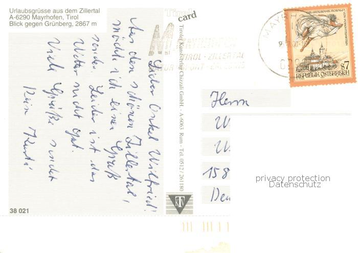 73754445 alte Postkarte Mayrhofen Zillertal Fliegeraufnahme mit Gruenberg postalisch gelaufen Erhaltung siehe scans [WerneD78] KatCode: 11390335070920