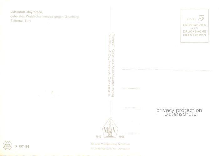 73157931 Mayrhofen Zillertal Freibad Blick gegen Gruenberg Zillertaler Alpen postalisch nicht gelaufen Erhaltung siehe scans [FriedD77] KatCode: 11390335070920