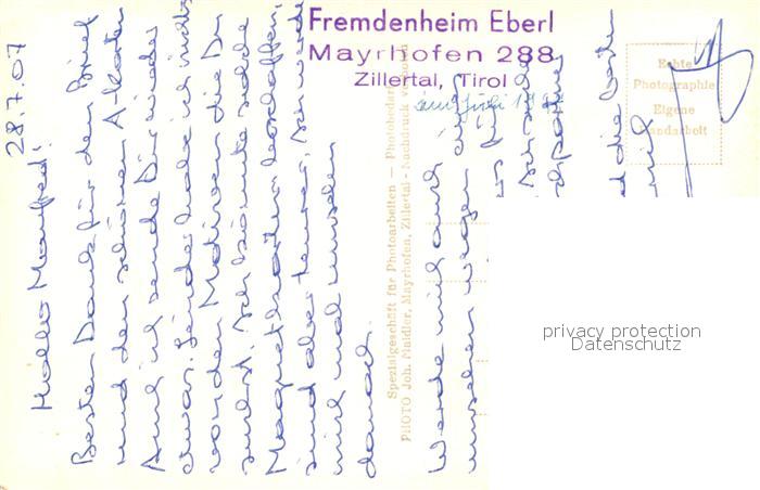 12909620 Mayrhofen Zillertal Fremdenheim Eberl postalisch nicht gelaufen Erhaltung siehe scans [AndreD76] KatCode: 11390335070920