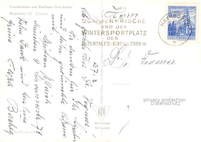 73588141 alte Postkarte Mayrhofen Zillertal Fremdenheim Kaufhaus Bacher postalisch gelaufen Erhaltung siehe scans [FriedD77] KatCode: 11390335070920