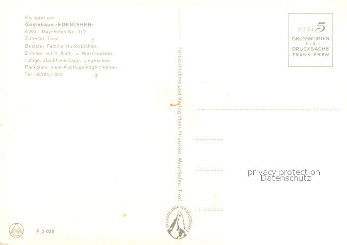 73630025 Mayrhofen Zillertal Gaestehaus Edenlehen postalisch nicht gelaufen Erhaltung siehe scans [WerneD78] KatCode: 11390335070920