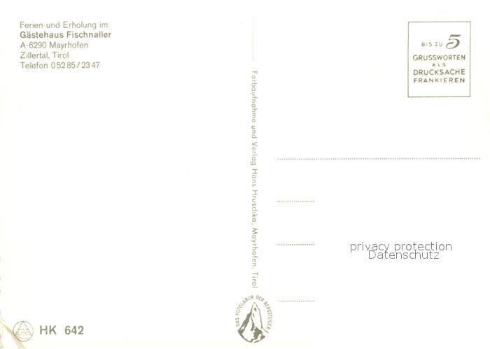 13235750 Mayrhofen Zillertal Gaestehaus Fischnaller postalisch nicht gelaufen Erhaltung siehe scans [FriedD77] KatCode: 11390335070920