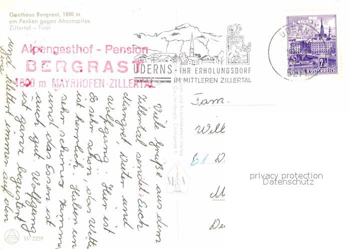 72620738 alte Postkarte Mayrhofen Zillertal Gasthaus Bergrast postalisch gelaufen Erhaltung siehe scans [LiesaD40] KatCode: 11390335070920