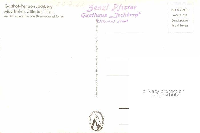 72832098 Mayrhofen Zillertal Gasthaus Pension Jochberg postalisch nicht gelaufen Erhaltung siehe scans [LiesaD40] KatCode: 11390335070920