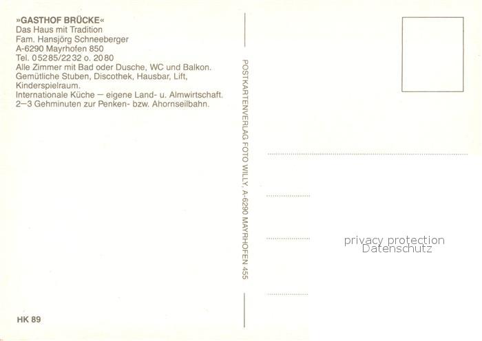 73588238 Mayrhofen Zillertal Gasthof Bruecke Alpen postalisch nicht gelaufen Erhaltung siehe scans [FriedD77] KatCode: 11390335070920