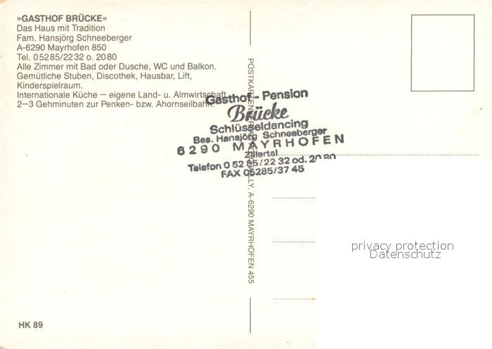 73694899 Mayrhofen Zillertal Gasthof Bruecke postalisch nicht gelaufen Erhaltung siehe scans [LiesaD40] KatCode: 11390335070920
