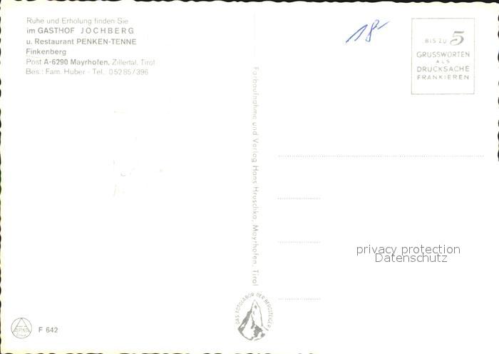 72493169 Mayrhofen Zillertal Gasthof Jochberg und Restaurant Penken Tenne postalisch nicht gelaufen Erhaltung siehe scans KatCode: 11390335070920