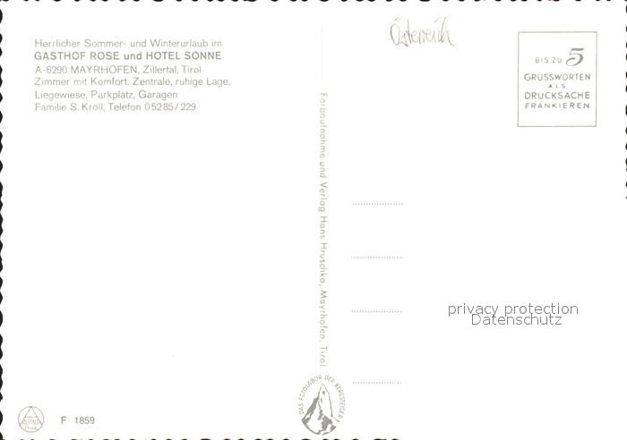 42923863 Mayrhofen Zillertal Gasthof Rose Hotel Sonne postalisch nicht gelaufen Erhaltung siehe scans [WerneD48] KatCode: 11390335070920