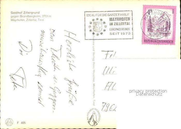 72437545 alte Postkarte Mayrhofen Zillertal Gasthof Zillergrund postalisch gelaufen Erhaltung siehe scans KatCode: 11390335070920