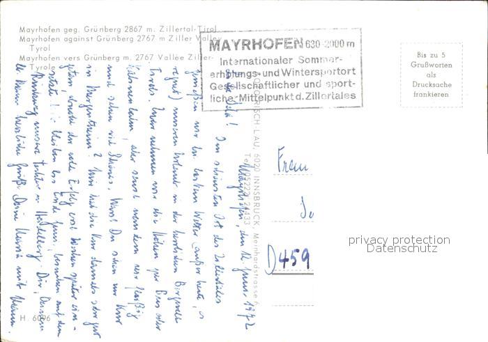 72438919 alte Postkarte Mayrhofen Zillertal Gegen Gruenberg postalisch gelaufen Erhaltung siehe scans KatCode: 11390335070920