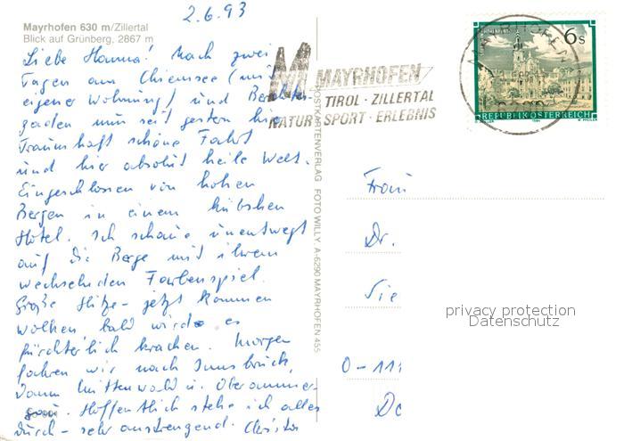 73598719 alte Postkarte Mayrhofen Zillertal Gr?nberg postalisch gelaufen Erhaltung siehe scans [PaolaD17] KatCode: 11390335070920