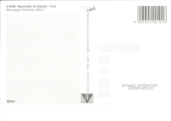 72038190 Mayrhofen Zillertal Gruenberg postalisch nicht gelaufen Erhaltung siehe scans KatCode: 11390335070920