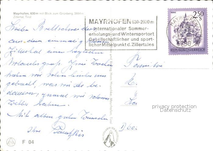 72509922 alte Postkarte Mayrhofen Zillertal Gruenberg postalisch gelaufen Erhaltung siehe scans KatCode: 11390335070920
