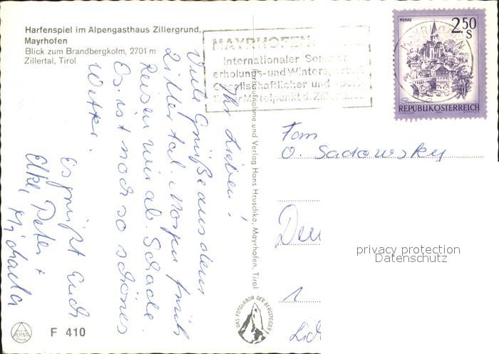 72607678 alte Postkarte Mayrhofen Zillertal Harfenspiel im Alpengasthaus Zillergrund postalisch gelaufen Erhaltung siehe scans [LiesaD40] KatCode: 11390335070920
