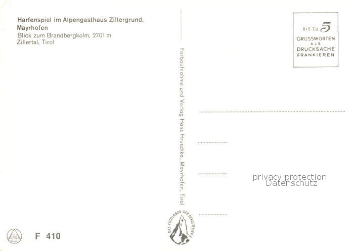 73232858 Mayrhofen Zillertal Harfenspiel Musikinstrument Alpengasthaus Zillergrund Brandbergkolm Zillertaler Alpen postalisch nicht gelaufen Erhaltung siehe scans [FriedD77] KatCode: 11390335070920