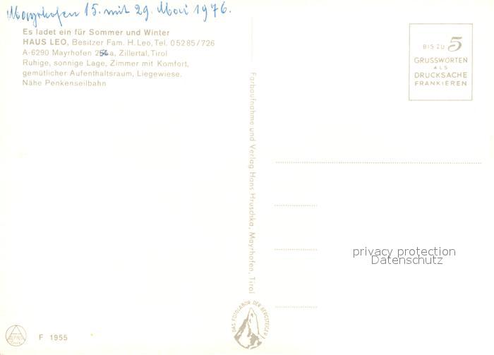 73588642 Mayrhofen Zillertal Haus Leo postalisch nicht gelaufen Erhaltung siehe scans [PaolaD17] KatCode: 11390335070920